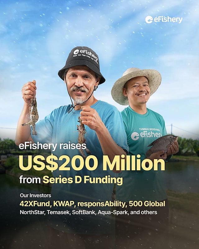 This investment round was led by Abu Dhabi-based global fund manager 42XFund and backed by Malaysia's largest public sector pension fund, Kumpulan Wang Persaraan (KWAP), Switzerland-based impact fund responsAbility, and early investor multi-stage venture capital firm 500 Global, with participation from existing investors including NorthStar, Temasek, SoftBank, Aqua-Spark, and others. The company also announced that Goldman Sachs is acting as eFishery's exclusive funding advisor.