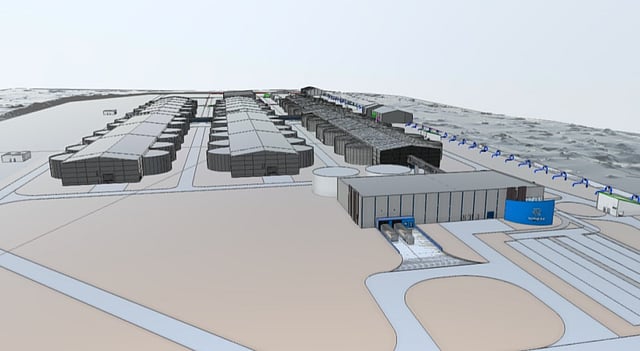 Virtual view of Samherji's Salmon Garden. The facility is located in Reykjanes, in HS Orka's Resource Park, adjacent to the geothermal power plant.