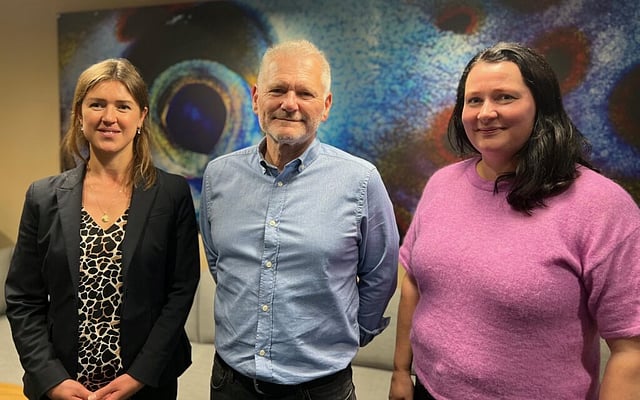 The two new hires, Viktorija Dorfan and Mette Remø, pose to the left and right, respectively, of their new boss, Benchmark Genetics CFO Jon Crowther.