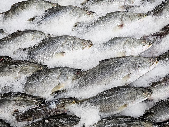 Fresh Barramundi Fish or Asian Sea Bass Displayed on a Bed of Ice at Market.
