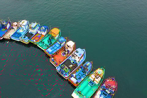 Fisher boats in the harbor. Pucusana, Lima, Peru.
