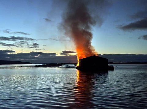 The barge, which serviced Cooke's West Fara salmon farm in Scapa Flow, Orkney, was unmanned at the time of the fire.