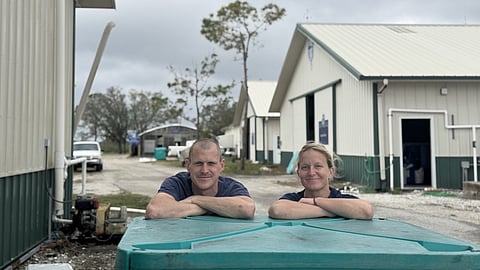 Pine Island Redfish co-founders Tom Sorby and Megan Sorby (CEO), pictured at their fish farming facility in Florida.