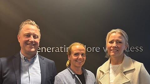 Eyvi CEO Kjetil Isaksen, Great Northern Salmon CEO Marianne Naess, and Eyvi CBDO Heidi Kyvik.