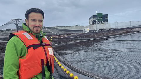 Aquafind co-founder and CEO Mario Nordly, pictured visiting an Aquafind client's fish farm in Chile.
