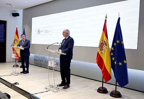 Spain's Minister of Agriculture, Fisheries and Food Luis Planas and EU Commissioner for Fisheries and Oceans, Costas Kadis, pictured in Madrid.