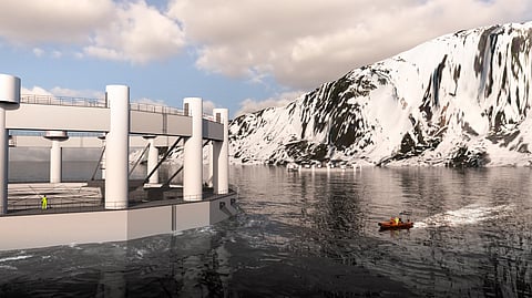 Digital rendering of Arctic Offshore Farming facility.